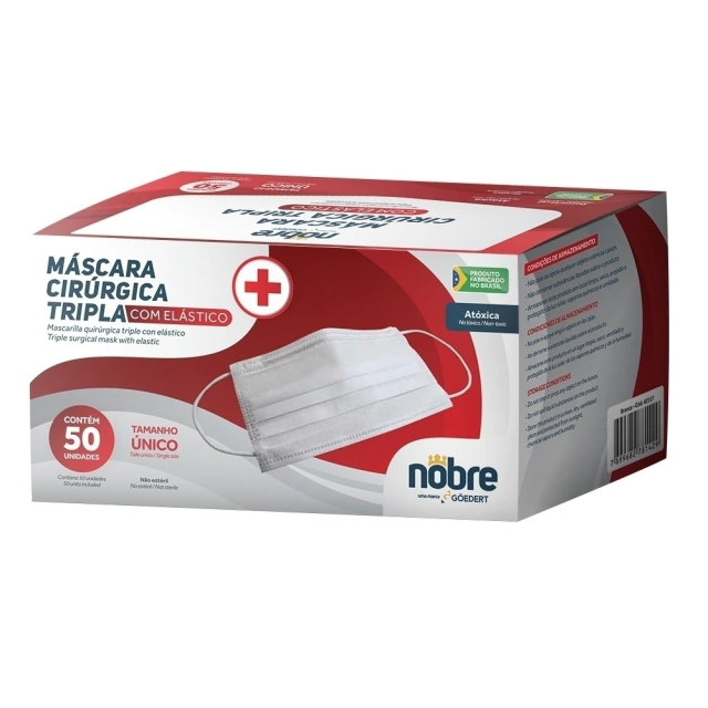 Máscara Cirúrgica Tripla Com Elástico (Caixa C/50 und.) NOBRE Descrição Técnica:
